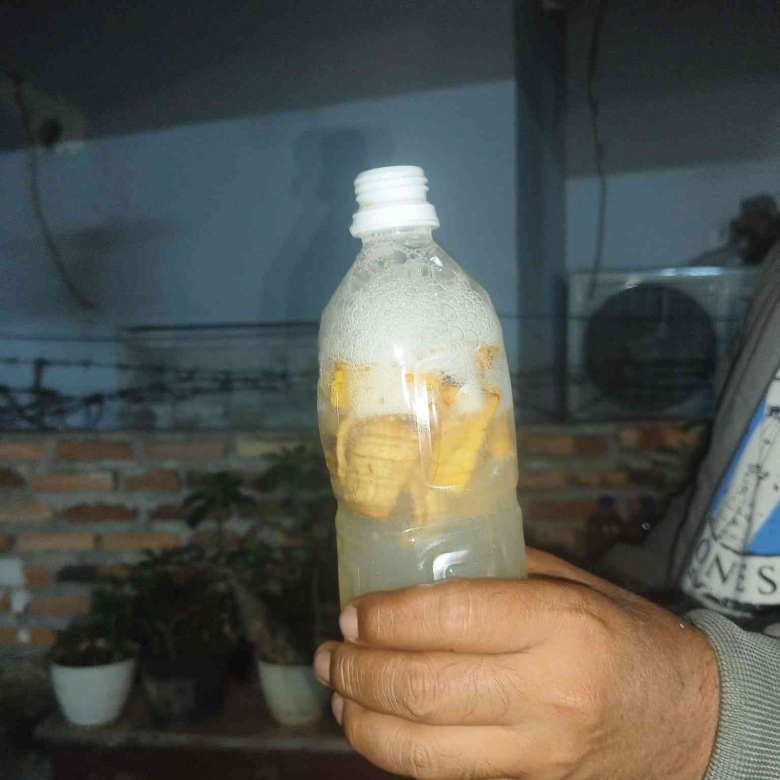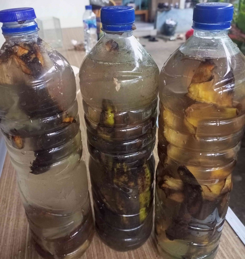 2. Campurkan kulit pisang dengan air dalam wadah tertutup.