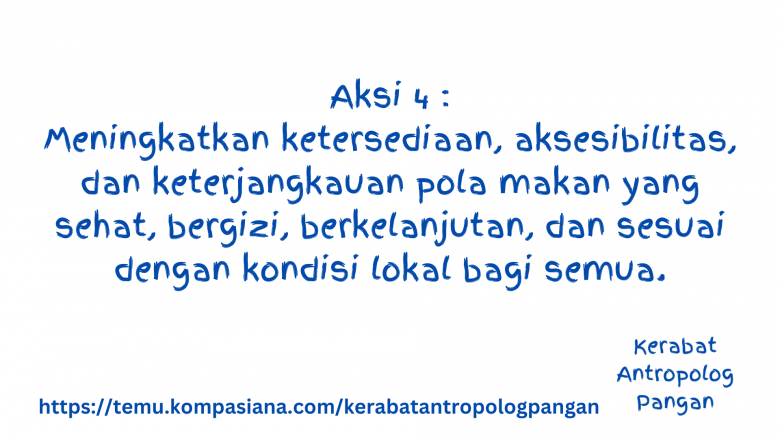 Meningkatkan ketersediaan, aksesibilitas, dan keterjangkauan pola makan yang sehat, bergizi, berkelanjutan, dan sesuai dengan kondisi lokal bagi semua - memastikan setiap orang dapat mengakses makanan yang memenuhi kebutuhan gizi, mudah dijangkau secara fisik dan finansial, serta diproduksi dengan cara yang ramah lingkungan dan sesuai budaya lokal.