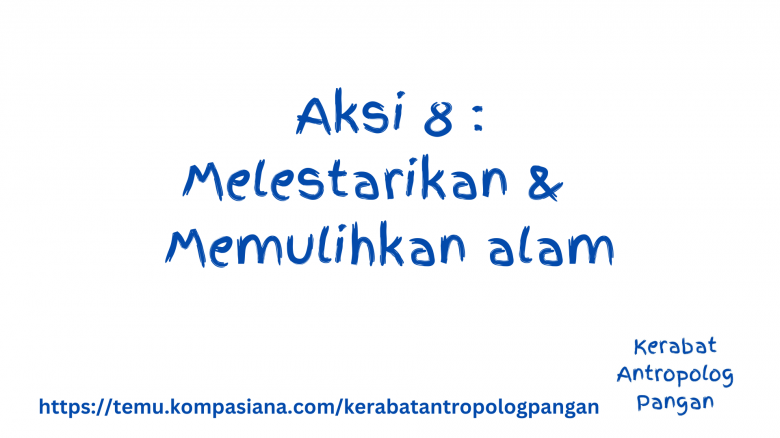 - Mengaktifkan kembali kebiasaan wanatani/agroforestri, memperbanyak tumpang sari pangan, dan menguatkan modal sosial. Hal ini agar ketersediaan pangan setengahnya disediakan oleh sekitar dan mudah terakses. Kerabat sudah memulainya ? memang melelahkan jadi harus bagi-bagi tugas dalam mengurusi dan menumbuhkan pangan terdekat ini, apalagi kalau bisa kompak dengan tetangga bisa saling berbagi komoditas yang ditanam dan bertukar komoditas, ah mungkinkah hal-hal seperti ini terwujud ditengah interaksi sosial memudar ?