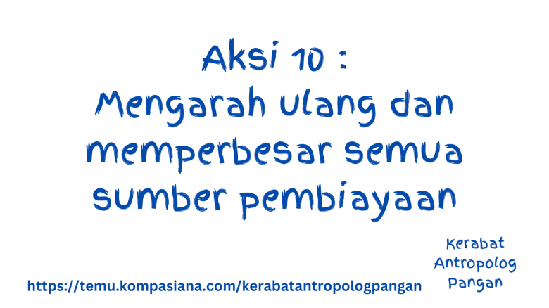 - Perempuan & Pemuda - Pusatkan upaya pada pelaku utama sistem pangan di garis depan, dengan fokus khusus pada perempuan dan pemuda. Jadi perempuan dan pemuda itu bukan dilecehkan tapi dibina, diarahkan dan diberi kesempatan, lebih bagus lagi didukung oleh kekuatan negara, silakan lihat kalau 1 orang perempuan berjasa dalam kontribusinya terlebih pangan, gerombolannya akan jadi banyak, pemuda juga jangan dikira tongkrongannya ga asyik, pemuda itu kalau dikasih kepercayaan (ditambah uang saku ya guys) jangan pernah meragukan rasa cintanya pada bangsa dan negara, ah tidak mungkin ? ah kalian saja yang sering diluar nalar kelakuannya, sehingga pemuda-pemudi ini tidak punya role model sebagai percontohan dan panutan. Makanya kalau mau pemuda-pemudi ini berkontribusi dan melakukan perubahan besar-besarkan, silakan mulai kikis kebiasaan korupsi, melecehkan rakyat kecil yang ditindas, kurangi konflik senjata, dan hal-hal yang tidak patut dipertontonkan kepada generasi penerus.