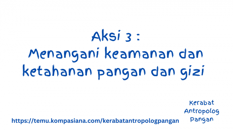 Menangani keamanan dan ketahanan pangan dan gizi - mengambil langkah-langkah untuk memastikan ketersediaan pangan yang cukup dan bergizi bagi seluruh populasi. Keamanan pangan mencakup akses terhadap pangan yang cukup, aman, dan bergizi untuk memenuhi kebutuhan diet yang sehat. Keamanan gizi melibatkan upaya untuk memastikan bahwa masyarakat tidak hanya mendapatkan pangan yang cukup, tetapi juga mendapatkan pangan yang mengandung nutrisi penting untuk pertumbuhan, perkembangan, dan kesehatan tubuh. Hal ini mencakup peningkatan produksi pangan lokal, distribusi yang adil, serta edukasi tentang pola makan sehat untuk mengurangi kekurangan gizi dan masalah kesehatan terkait pangan.
