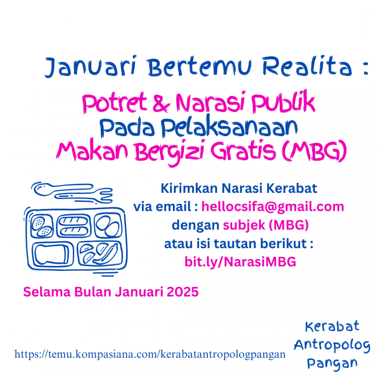 Kirimkan Potret & Narasi MBG pada email : hellocsifa@gmail.com dengan subjek MBG atau kerabat bisa kirimkan via google form pada tautan berikut untuk berpartisipasi selama bulan Januari 2025, tautannya : bit.ly/NarasiMBG
