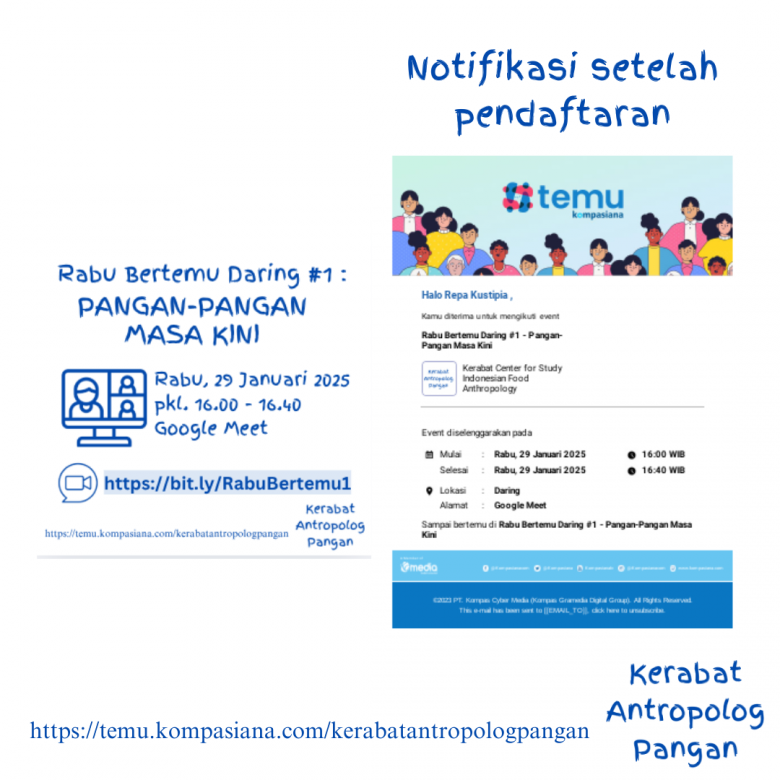 Kerabat yang baru bergabung juga bisa membaca dan menyimak kembali Rabu Bertemu, jadi jika kerabat tidak sempat membacanya, kerabat juga bisa menyimaknya di Youtube : Center for Study Indonesian Food Anthropology