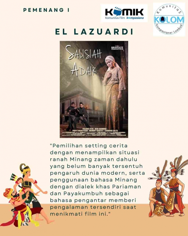 1. El Lazuardi yang mengupas tentang tradisi Minang lewat film "Salisiah Adaik"