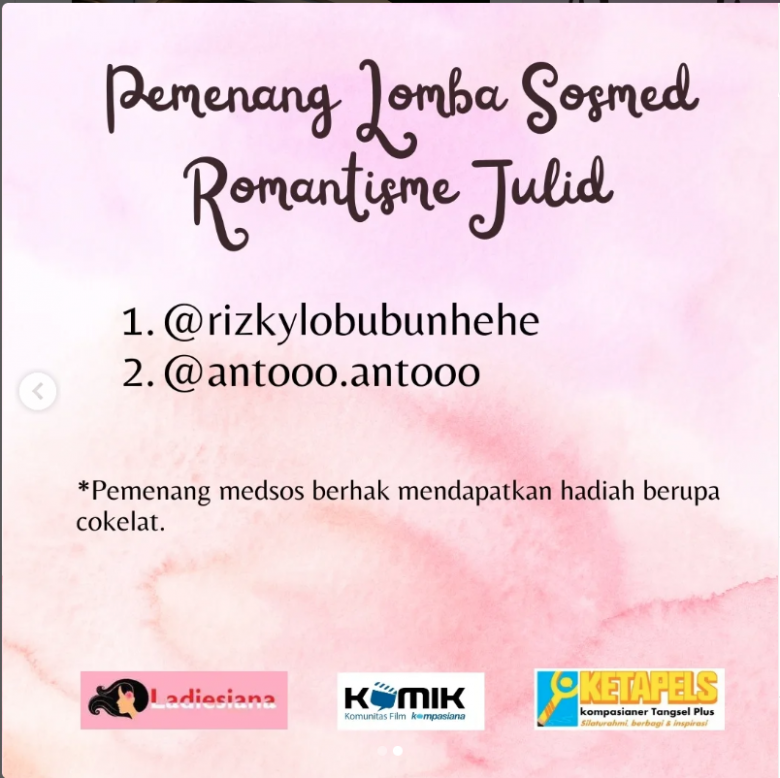 Selamat kepada para pemenang lomba blog dan sosmed "Romantisme Julid"! 𥳠@ketapels_ @k_ladiesiana