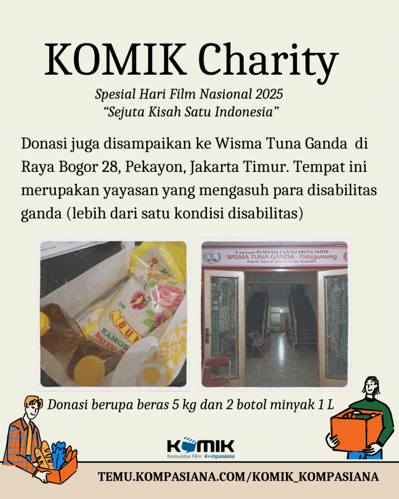 Pada tanggal 18-25 Maret lalu KOMiK mengadakan event KOMiK Charity Spesial Hari Film Nasional 2025 berupa penulisan artikel film Indonesia yang bisa dikonversikan ke dalam uang donasi dengan nilai tertentu. Setelah direkap, terkumpul Rp225 ribu baik dari besaran konversi dan kas KOMiK.